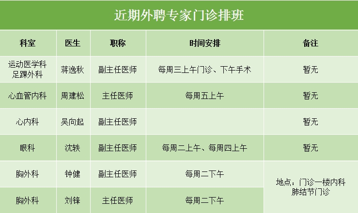 近期外聘专家门诊排班(12.1-12.15)