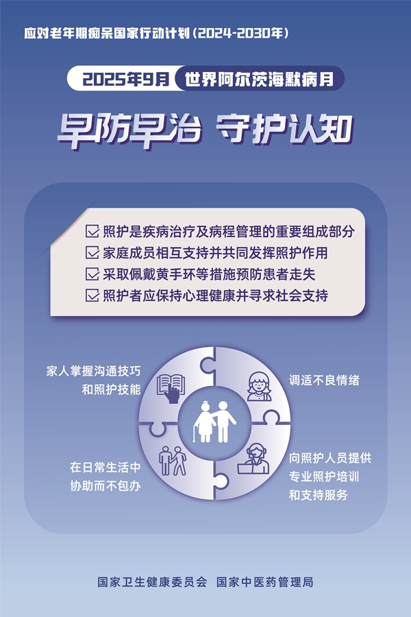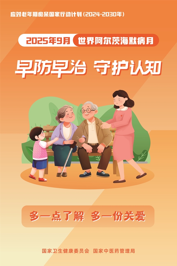 为贯彻落实《健康中国行动(2019-2030)》《应对老年期痴呆国家行动计划(2024-2030)》,切实做好老年期痴呆防治科普宣传工作,国家卫生健康委和国家中医药局组织开展2025年世界阿尔茨海默病月主题宣传活动(每年9月为世界阿尔茨海默病月,9月21日为世界阿尔茨海默病日)。