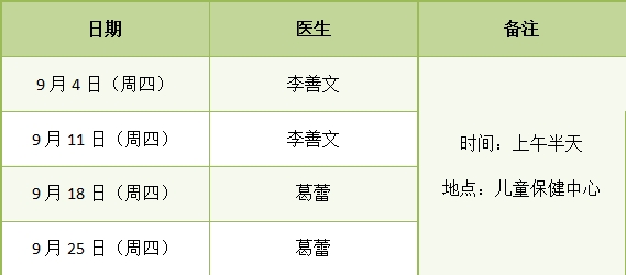 近期外聘专家门诊排班(9.22-9.30)