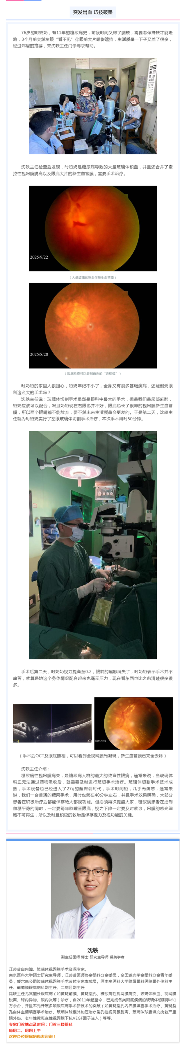 突发出血 巧技破墨——我院眼科成功为糖尿病患者实施玻璃体切割手术