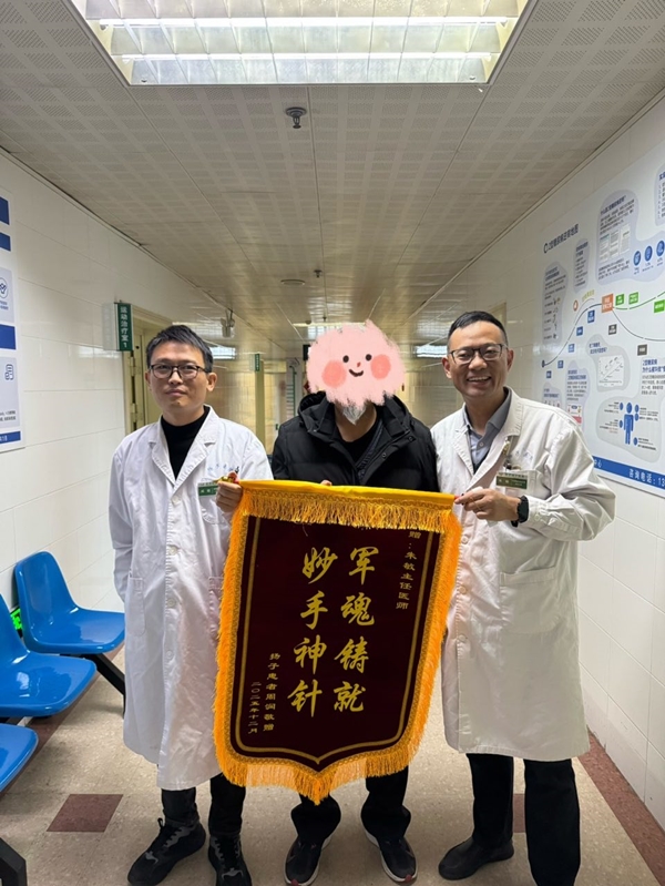 本周三上午,中西医结合科又收获了一份特别的认可——患者周先生赠予的锦旗。 患者周先生因肩周疼痛一个多月伴活动受限,影响日常生活,经我院中西医结合科多位一体特色疗法康复出院。这不仅是对我们全体医务人员辛勤付出的肯定,更是对未来工作的深深鞭策。每一面锦旗背后,都是患者重获健康的喜悦与信任,激励我们不断精进医疗技术,优化服务质量识。