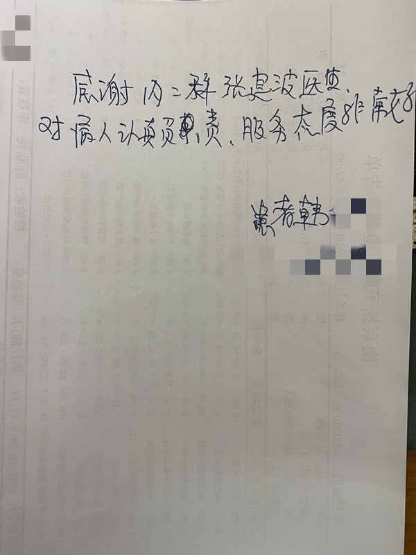 老人为表达心中的感谢,特意来到门诊导医台,写下了这段简短的感谢信。老人说,自己不太会写什么漂亮话,但张医生这样对待患者认真负责的医生十分值得表扬。